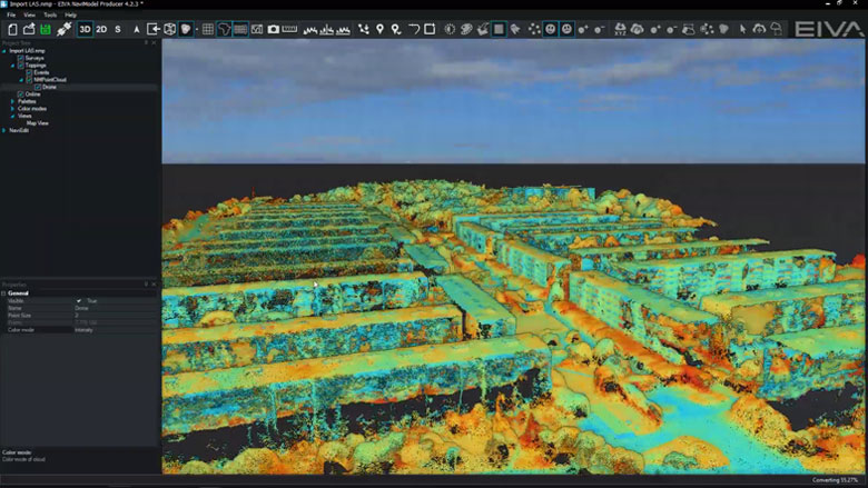 LAS and LAZ files can be imported as DTMs or as point clouds, meaning you can use NaviSuite’s powerful modelling capabilities for validating data in this format. You can also export your model to this format.