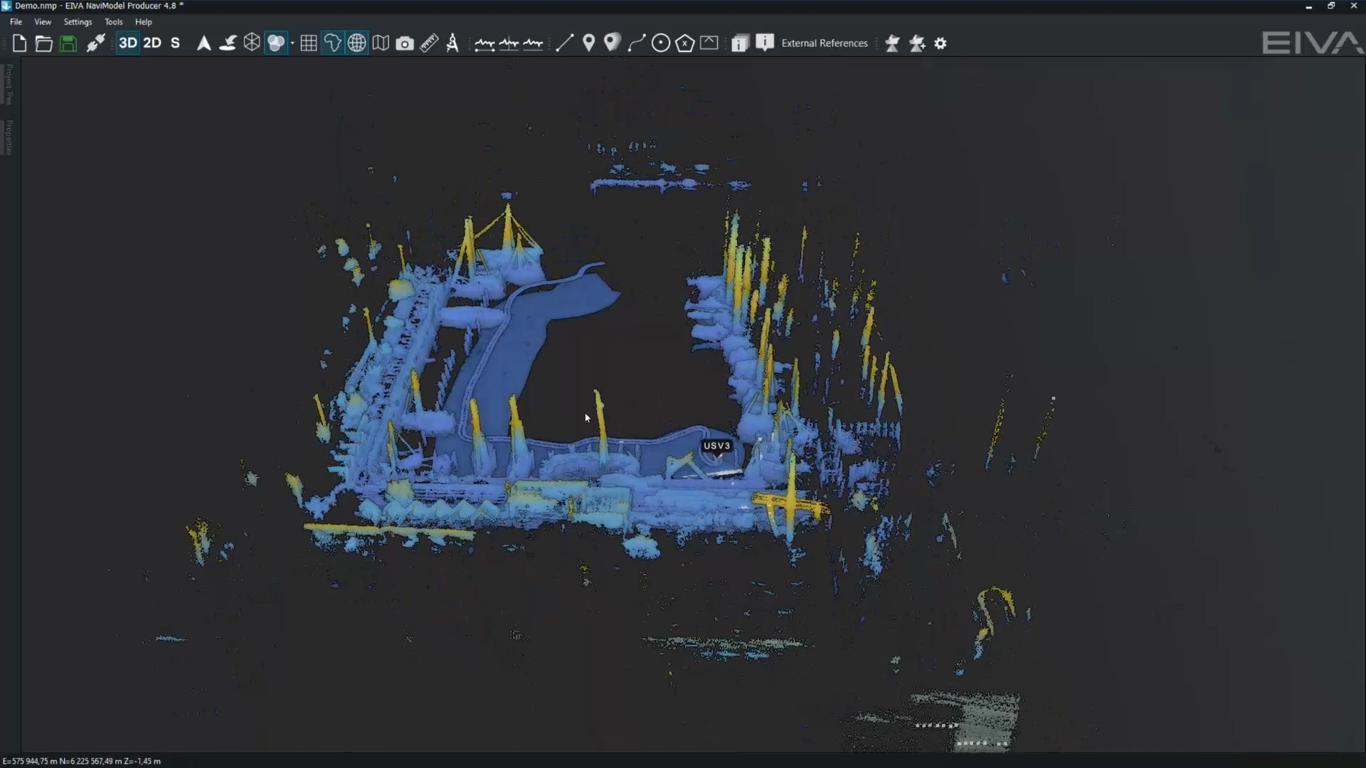 With the increasing sizes of datasets, customers performing data visualisation or analysis of very large 3D point clouds previously encountered the issue of relatively long loading times on these. Consequently, in NaviModel 4.8, which was released in September 2023, EIVA implemented a new point cloud engine which has made it possible to render larger point clouds at a speed of ~300,000 to 500,000 points per second for as long as you need. This makes it possible to navigate your 3D data even more easily, viewing it from any angle and zooming in and out freely.