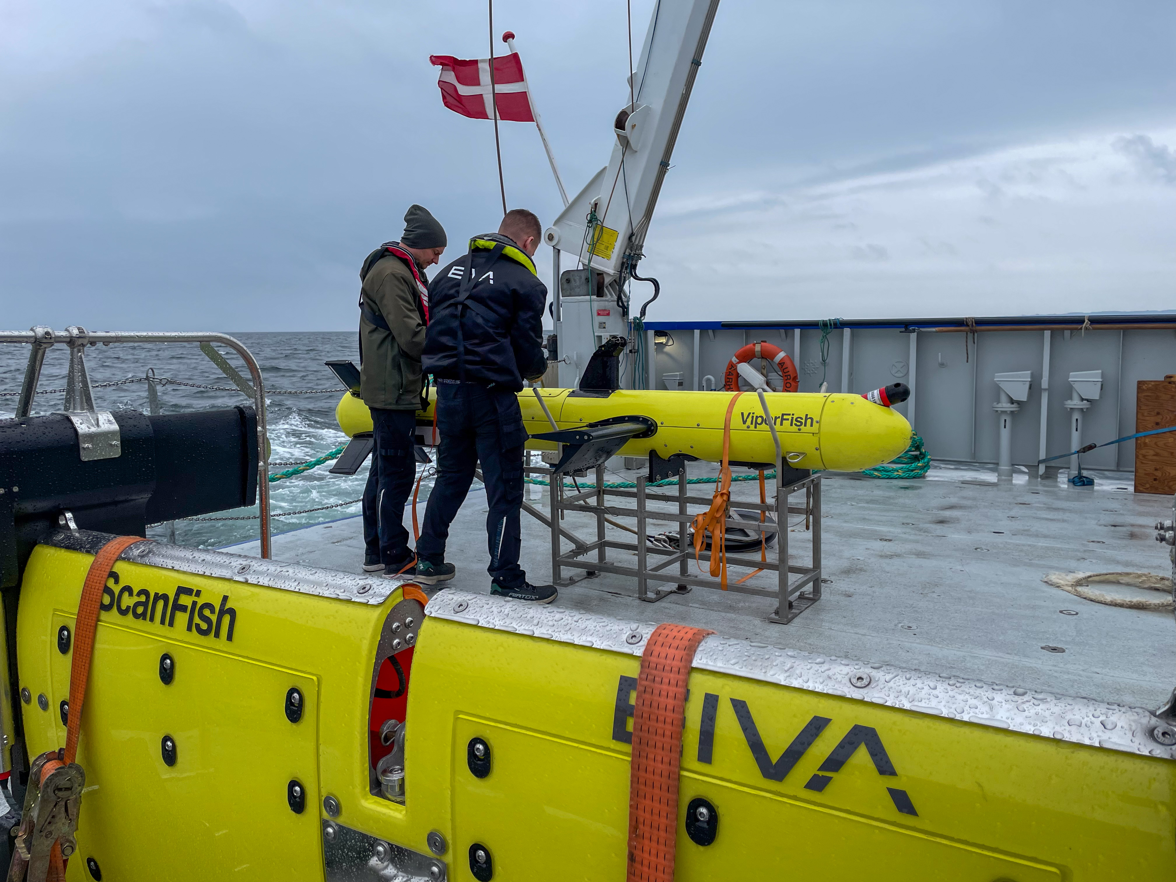 Preparing for launch of EIVA’s ViperFish ROTV (remotely operated towed vehicle) from AURORA, the research vessel of Aarhus University
