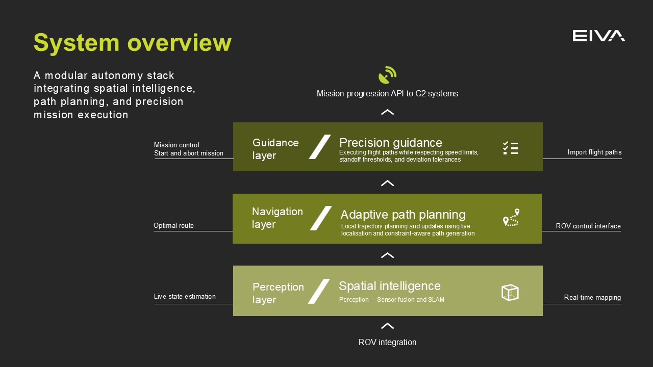 NaviSuite ROV Autonomy is a supervised autonomy software package that supports inspection, maintenance and repair operations. It translates inspection requirements into ROV guidance-level commands, so the vehicle can handle repeatable motion while the pilot remains in command with instant override.